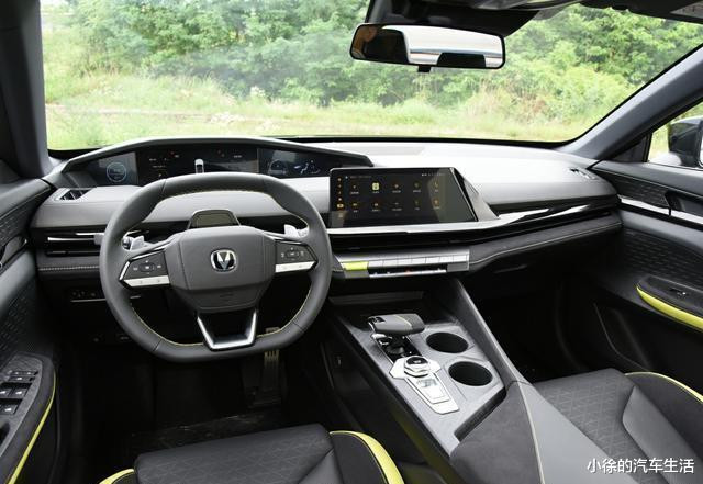 内饰方面,长安UNI-V富有创新,采用不对称中控台设计,显得独具匠心且井然有序。全系标配两块10.3英寸屏幕,确保各车型配置丰富,低配版亦无缺失感。